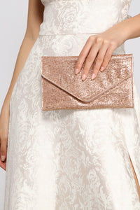 Channel that timeless shine with a glitter clutch that matches your flawless glow! The clutch features a small rectangular body, a fold-over closure, a turn-lock fastening, and a glitter mesh body. Complete look with an LBD.
