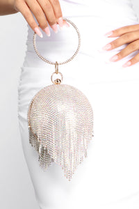 Time To Shine Rhinestone Fringe Sphere Clutch
