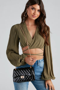 The verdict of this patent leather crossbody bag is that you must have it! The bag features an adjustable chain link strap, front turn-lock closure, a spacious interior, and a quilted design on patent faux leather material. Complete the look in a strappy crop top.