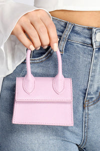 Elevate your look with a glam handbag that reflects your stylish taste. The handbag features a small rectangular shape, a faux croc-embossed body, a snap button closure, and a shoulder strap. Complete the look with a ruched mini dress.