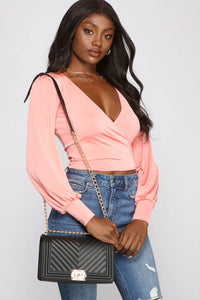 Slay with a luxe purse that keeps your look on point with stunning details! The purse features a large rectangular body, a fold-over closure with a turn-lock fasten, a quilted diamond-stitched design, and a large compartment at the back with a snap button closure. The interior features a top zipper closure, woven nylon lining, and a small zippered pocket. Includes a combination chain link and faux leather shoulder strap.