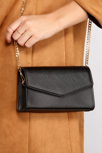 Bring it back to basics in a sleek crossbody! This must-have crossbody features a mini body, an envelope design, and a chain shoulder strap. Complete your look with a trench coat and high waist jeans for your next night out.