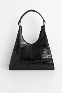This cute handbag has the extra space you desire to keep your necessities within reach! It features square top handles, a rectangular body, a detachable shoulder strap, croc faux leather material, snap-button closure, and a spacious lined interior with a zipper pocket. Complete the look in a boss babe blazer and trouser pants.