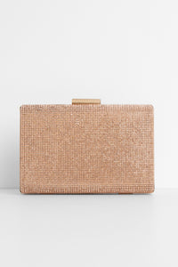 Illuminate the night with a clutch that brings the dazzle to your look! The clutch features a rectangular body, a top fasten closure, baguette gemstones and rhinestones on the front, and a dainty chain shoulder strap. Complete look with a satin dress and mules.