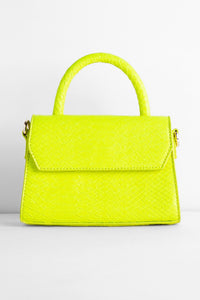 Keep it sassy in a snake crossbody that brings a fierce vibe for your next night out! The crossbody features a fold-over closure with turn-lock detail, a clear rectangular body, and a holographic snake trim and lining. Complete your look with a sleek midi dress!