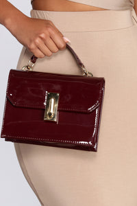 You know how to handle the latest fashion trends! This purse features a rectangular structured shape, a turn lock closure, and a singular handle. Purse includes a satin lining with a zipper pocket, and a detachable cross-body strap. Composed of a sleek and shiny patent material.Style Number/Barcode: 07203-0093