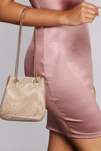 Rhinestone Mesh Bucket Bag