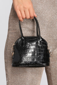 Add a posh mini bag to your accessories collection! This mini bag features a faux leather exterior with a top handle, a flap top with a turn lock closure, and a detachable crossbody strap.Style Number/Barcode: 07203-0121