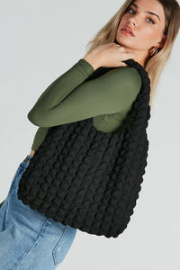 With this quilted puffer tote bag, you'll enjoy its fashion and functionality of being on the go! It features a shoulder straps that allows for easy carrying and a spacious canvas interior with plenty of room for all your essentials and a pocket. Complete the look in block heel booties for a cute, everyday style!