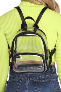 This backpack is clear as day! Literally. It has a two zipper compartment paired with adjustable straps and a basic handle at the top. The clear bag is composed of a pvc material with a black trim and gold metal details. It's the perfect piece for that upcoming festival!