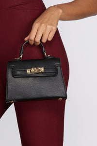 Add a posh mini bag to your accessories collection! This mini bag features a faux leather exterior with a top handle, a flap top with a turn lock closure, and a detachable crossbody strap.Style Number/Barcode: 07203-0120