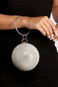 Illuminate the night with a sphere clutch that dazzles up your look! The clutch features a trendy sphere shape, a rhinestone embellished body, and a rhinestone adorned O-Ring handle. Complete your look with a sleek little black dress and strappy heels.