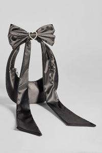Luxe Rhinestone Bow Strap Satin Shoulder Bag