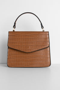 A faux leather mini shoulder bag featuring a scrunched top handle, magnetic closure, and a spacious interior with a pocket perfect for stashing your keys, cards, phone, and more.