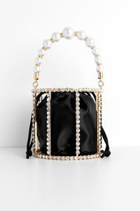You Go Pearl Rhinestone And Pearl Basket Handbag