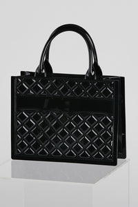Step up your looks with this elevated chic tote bag! It features a large rectangular shape with top handle straps and a trendy quilted design. Style this jelly bag with a boyfriend blazer.