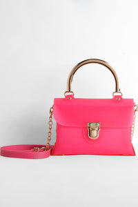Get up and glow with just the essentials in tow! This structured mini bag is crafted from a smooth, jelly-like material with single flap and luxe hardware including top handle, studding, feet, detachable chain strap, and catch lock closure.Style Number/Barcode: 07203-0077
