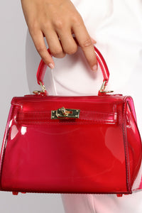 Complete your 'fit with this fun and trendy mini jelly purse! It features a square shaped design with a top handle, a fold over closure with double strap detailing and a turn lock closure, and an included attachable shoulder strap.