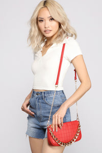 You'll be a total chic babe when you accessorize your everyday 'fit with this trendy shoulder bag. It features a rectangular shape with a top zipper closure, a removable thick chain-link shoulder strap, an included adjustable faux leather and chain-link crossbody strap, and a woven patterned interior with a single pocket and three card slots. The bag has a quilted front design and is composed of a smooth faux leather material. Pair this bag with a casual dress and sneakers.