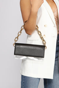 Make a stylish statement with a crossbody that keeps your look oh so stylish! The crossbody features a clear PVC body, a faux leather fold-over closure with snap button closure, a chunky chain-link handle, and a detachable chain shoulder strap. Complete look with an LBD.