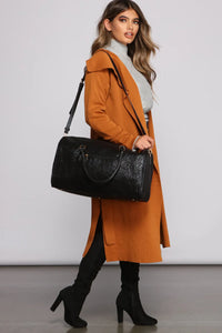 Treat yourself to a getaway with the girls and pack all of your essentials in a glam duffel bag! Pair this bag with your fave faux fur coat and booties.