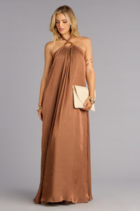 Effortless and ethereal, the Marlyne formal dress moves like a warm breeze. Designed in airy organza fabric with a halter neckline and chic O-ring accent, its free-flowing A-line silhouette and open back create an easy elegance that’s perfect for sunset dinners or coastal soirées.