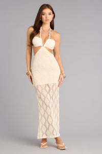 A dress that does the flirting for you. The cutout crochet shows just enough, while the shell and sequin details add that subtle shimmer that catches light—and attention—without trying. This is your out-all-day, glow-all-night kind of maxi dress.