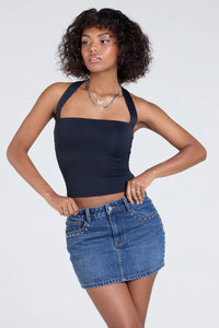 Flaunt a cute energy in this halter crop top to pair with your favorite skirts or jeans!