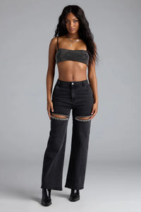 So Obsessed Rhinestone Cutout Straight Leg Denim Jeans
