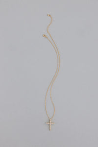 Radiate a divine sparkle in this dainty chain necklace featuring a cross pendant with small cubic zirconia embellishments.