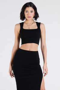 Enter your elevated era with this chic staple ribbed knit tank top perf for everyday styling. Designed with a sleeveless square neckline and fitted cropped hem, pair with the matching midi skirt for a seamless look.