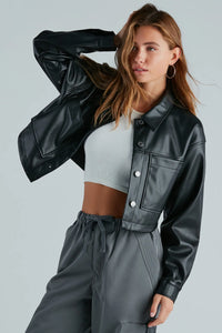 Sultry Muse Buckle Strap Faux Leather Crop Top