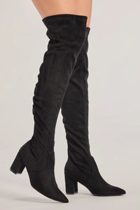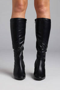 Versatile and chic, these under-the-knee boots will be your favorite this season! The square toe and thin block heel provide a sleek and modern look, while the faux leather material adds a touch of sleekness.