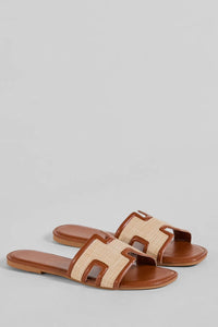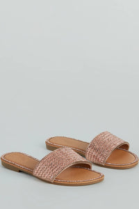 Pop Of Cute Straw Faux Leather Flat Sandals