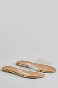 You're always glam, even when it comes to your casual 'fits! These faux leather sandals are a perfect match for you. They feature a square toe, a dual clear strap design with faux pearl and mini rhinestone accents, and an open back for easy on-and-off styling. Pair with dainty stud earrings.