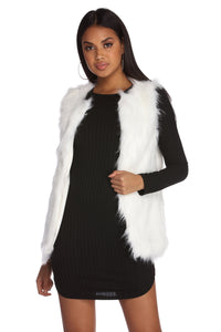 Because we're here for a good time, not a long time! This fab ivory faux fur vest has an open front with a hidden single hook closure, faux leather side panels, and a relaxed fit. Vest is composed of a soft, faux fur fabric with an interior satin lining.