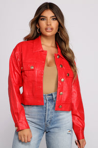 Feelin' Bold Croc Embossed Faux Leather Jacket