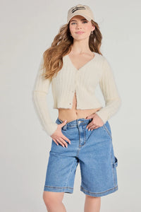 Get cozy in this eyelash knit button-down cardigan sweater. With a V-neck, long sleeves, and fitted cropped hem, it's your go-to for effortless style and comfort.
