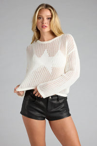 An effortless crochet sweater for layering or styling alone! It's designed with a star front design that adds a trendy touch and a relaxed fit for comfort.