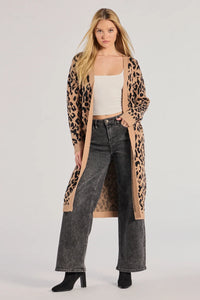 Fierce Vibes Leopard Print Long Sleeve Knit Duster