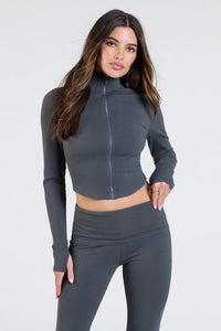 A comfy and cute zip-up crop jacket perfect for post-pilates and grabbing coffee! Pair with the matching bottoms.