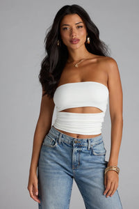 Ultra Trendy Cutout Tube Top Ultra Trendy Cutout Tube TopPerfect for a day or night out, this tube top is the perfect elevated staple! This chic top features a flattering cutout design that will turn heads wherever you go. Fit & Features - Brushed knit soft stretchy fabric
