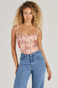 Pick The Flowers Lace Trim Floral Corset Top Pick The Flowers Lace Trim Floral Corset TopSpring into this floral corset top for a picture-perfect look at farmer's markets! Fit & Features - Floral print, woven lined fabric