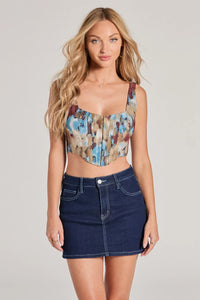 Pretty It Girl Lace-Up Floral Bustier Pretty It Girl Lace-Up Floral BustierA sleeveless floral bustier boasts a pretty lace-up back and a fitted crop hem perfect for flaunting your figure. Style with jeans for any plans. Fit & Features - Floral pattern, mesh fabric, sewn-in satin lining