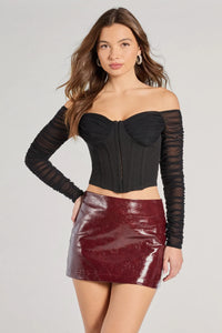 Downtown Looks Long Sleeve Mesh Bustier Downtown Looks Long Sleeve Mesh BustierKeep it fierce in this long sleeve mesh bustier top. With sheer sleeves, a sweetheart neckline, and a cropped hem, this top is your go-to for turning heads and owning the night. Fit & Features - Mesh lined fabric