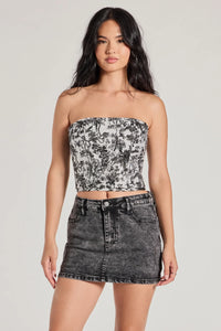 Have We Met Strapless Lace Up Jacquard Corset Top Have We Met Strapless Lace Up Jacquard Corset TopMeet your new favorite corset top for enchanting entrances and exits where every eye will be on you! Featuring a strapless neckline and a flattering lace-up back, this corset top is designed to enhance your figure and draw attention. Made with flexible boning and a jacquard woven fabric, it offers a stylishly snatched fit along the cropped hem. Complete the look in a denim midi skirt for a casual hang out! Fit & Features - Jacquard woven lined fabric, no stretch