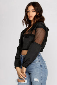 Style it up by layering on this trendy sheer cropped jacket over all your cute 'fits!
