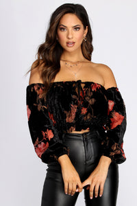 The foiled floral detailing on this mesh crop top is sooo pretty! Pair with the matching mini skirt for a wow moment.
