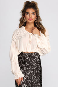 Pretty and classic, this bubble sleeve blouse will be sure to dress up your everyday 'fit!