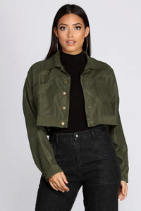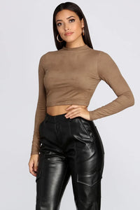 Chic and stylish, this faux suede crop top is a must-have for fall! It features a high neck, long fitted sleeves, and a cropped hem. The smooth faux suede fabric offers moderate stretch and a form hugging fit.Style Number/Barcode: 06001-1858